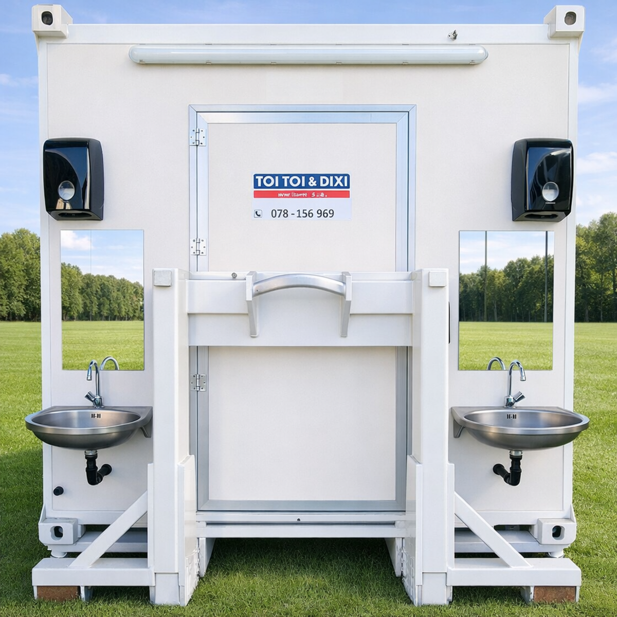 Notre conteneur sanitaire 14W est la solution idéale pour les événements où les visites aux toilettes doivent être rapides et efficaces. Cela permet d'éviter les longues files d'attente et de préserver l'intimité nécessaire.
