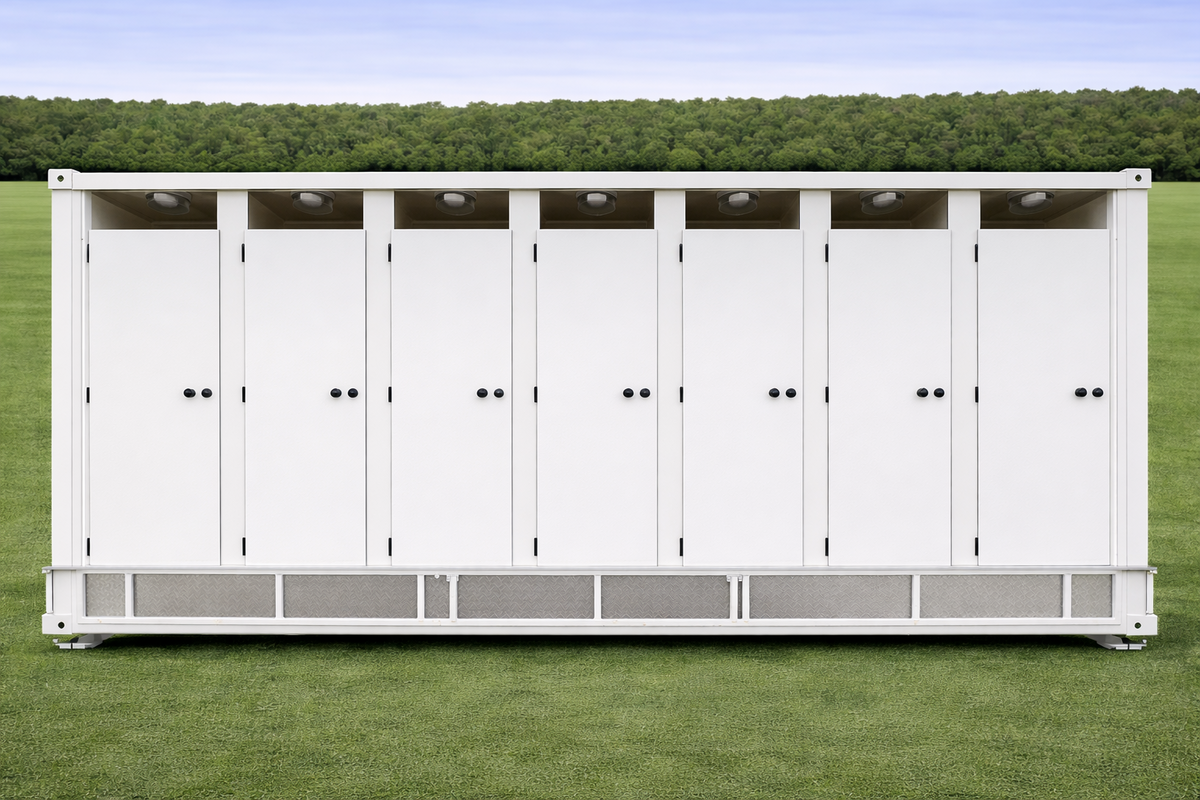 Vous cherchez encore plus de capacité ? N'hésitez pas à jeter un coup d'œil à notre conteneur de toilettes à 16 portes.