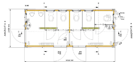Onvoorstelbaar wat u in een Basic Line Dames en Heren WC container van ongeveer 15 m² terugvindt. Dankzij de perfecte indeling van de sanitaire container, kunnen tot zeven personen tegelijk van deze container gebruik maken.